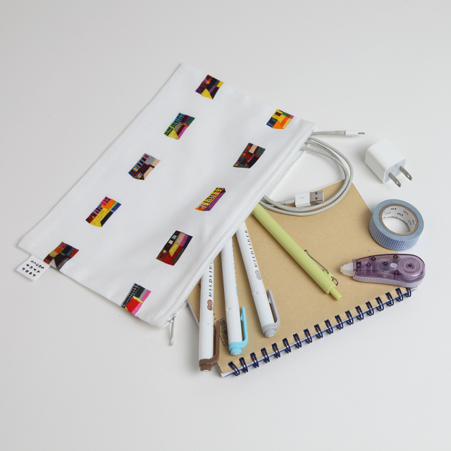 バッグの中にアート。マチのないタイプの平たいポーチは、使い方自由自在。