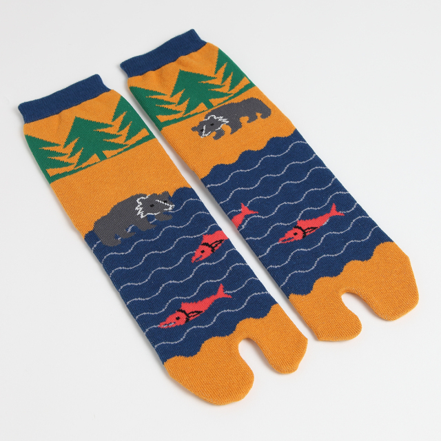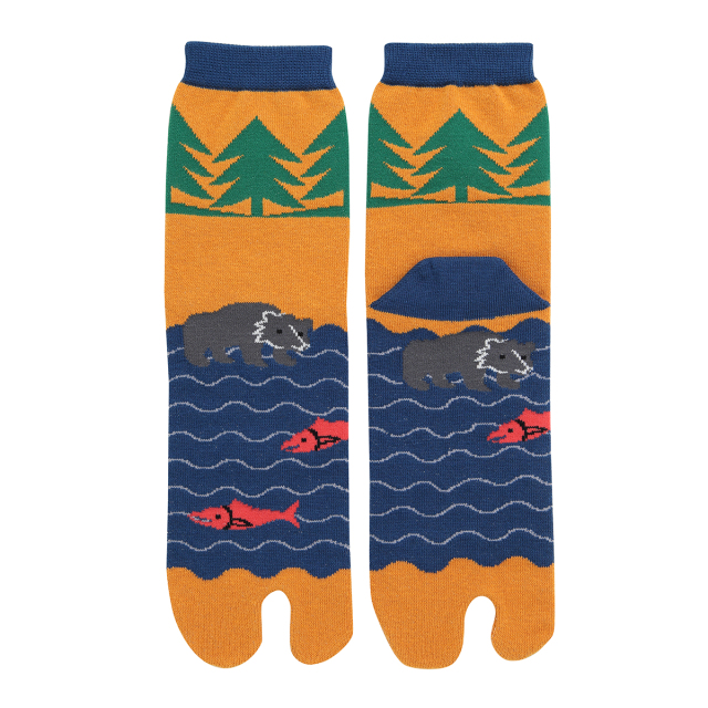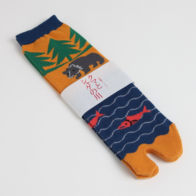 KY18-1068/足袋ソックス/クマとシャケの川/【4足までゆうパケット可】