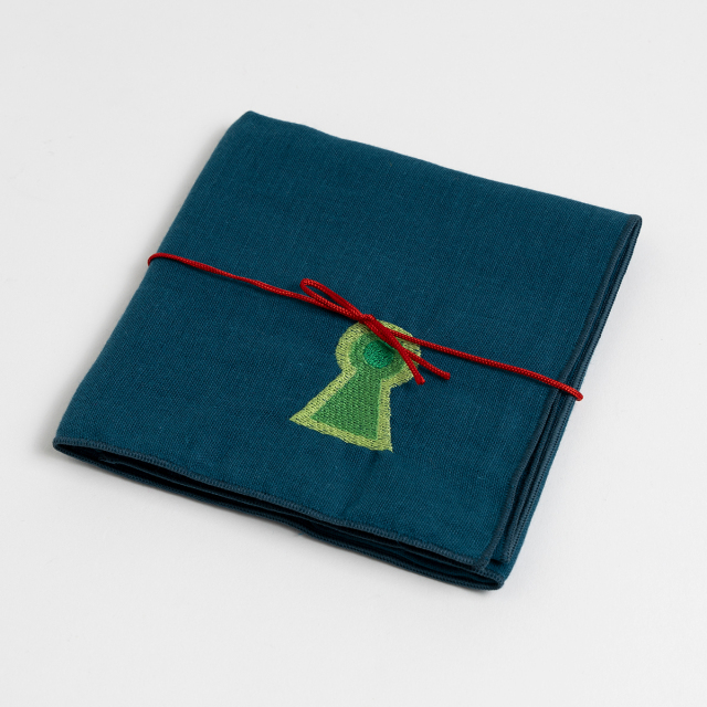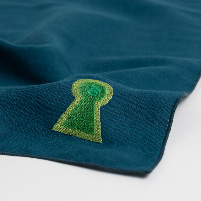 KY28-1148/綿100%の国産ガーゼハンカチに、前方後円墳をワンポイント刺繍しました。