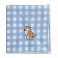KY28-1158/今日も一緒に、いい一日を。爽やかな水色ギンガムの国産ガーゼハンカチに、ワンポイントで柴犬を刺しゅうしました。