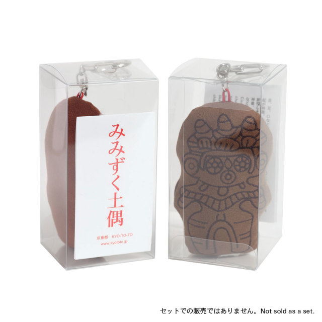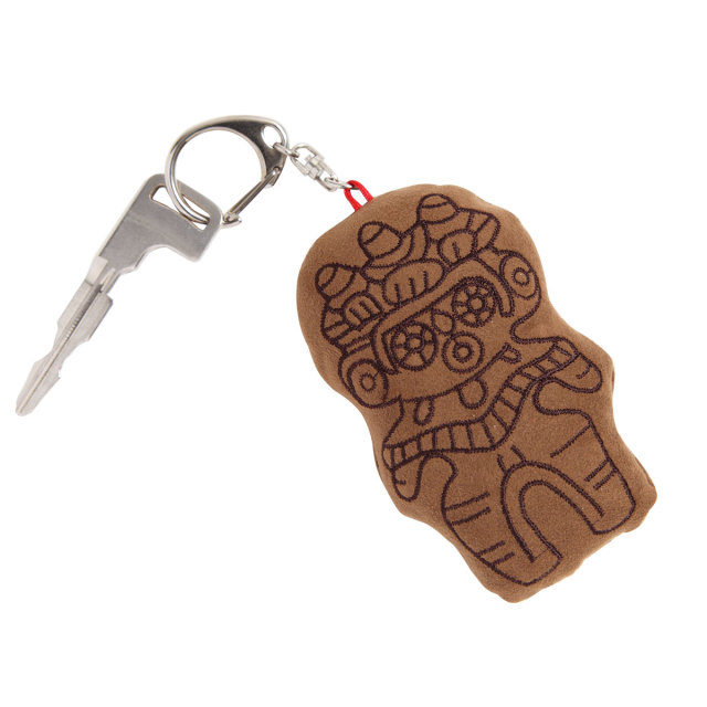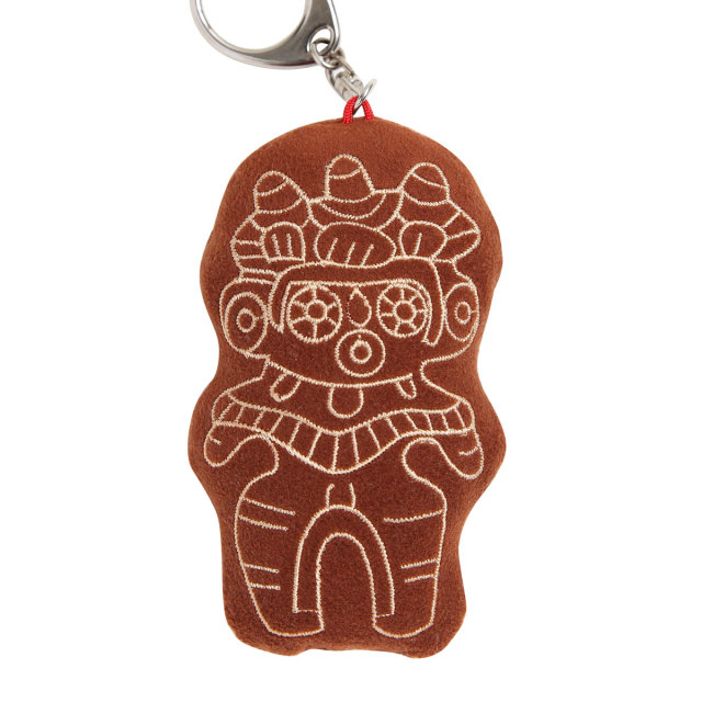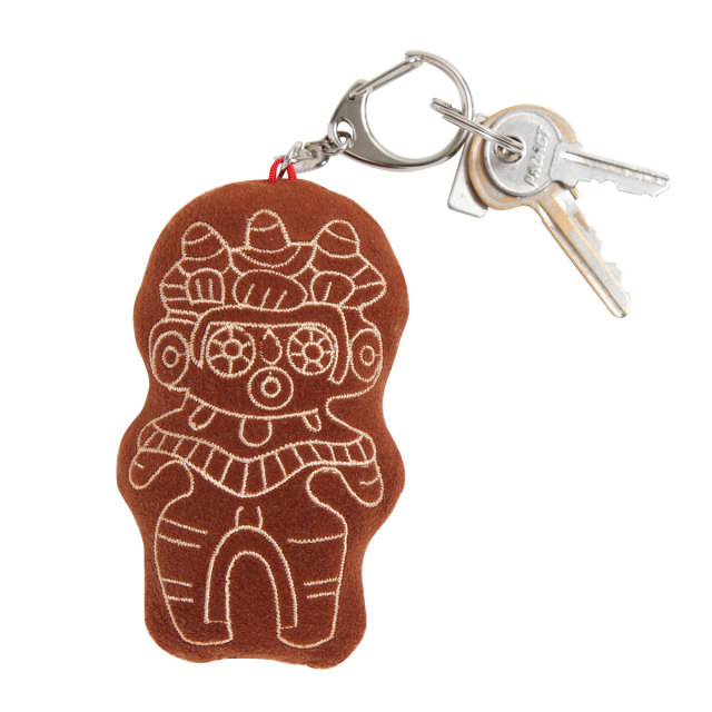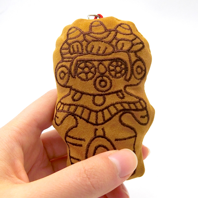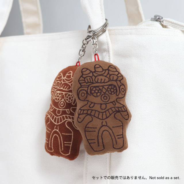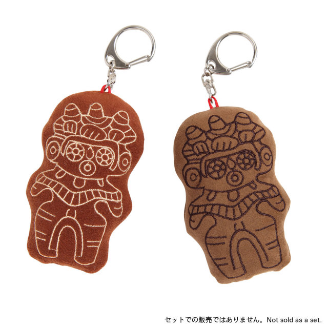 KY42-498/目、耳、口など同じ大きさの丸で表現されているタイプ。頭の突起が特徴のみみずく土偶の綿入りキーホルダーです。
