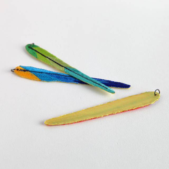 KY50-835B/刺繍の鳥の羽根のアクセサリーパーツ。先端にホールを作り丸カンをつけました。ピアスやブローチ、チャームなど、お好みでアレンジいただけます。