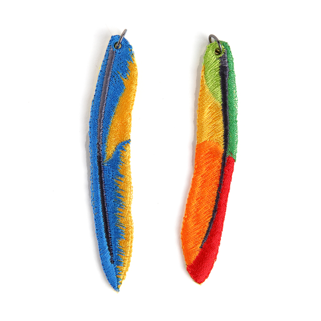 KY50-835S/刺繍の鳥の羽根のアクセサリーパーツ。先端にホールを作り丸カンをつけました。ピアスやブローチ、チャームなど、お好みでアレンジいただけます。