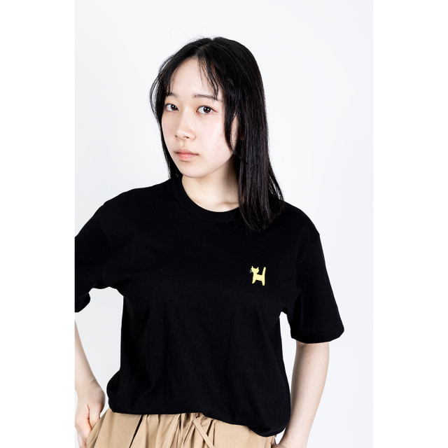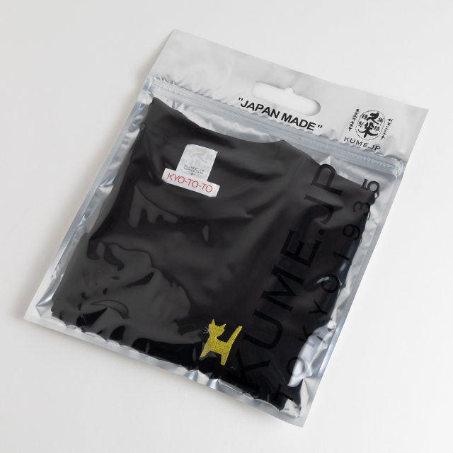 KY54-1186/京都のテキスタイルブランド青衣とのコラボTシャツ。お魚をくわえて逃げるどら猫をワンポイント刺繍しました。