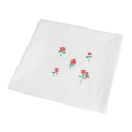 KY59-1097/レースのようにロマンティックな織り柄が美しく浮かぶ、和泉和晒のコットン・ティータオル。やわらかな風合いの生地に、赤い薔薇の飛び柄刺繍をあしらい、さりげない華やかさを添えました。ループ付きでフックに掛けられ、日常に上品な彩りをプラスします。