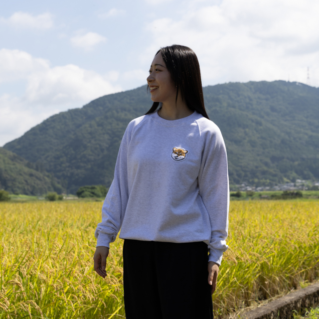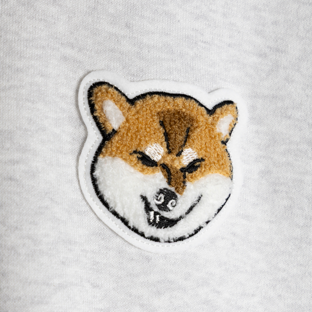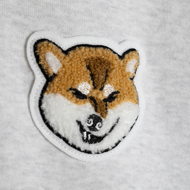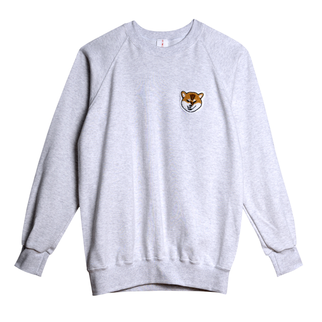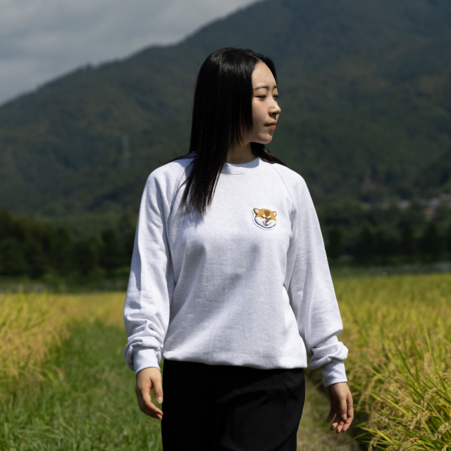 KY87-1214/さがら刺しゅうのムキ柴を、胸元にワンポイント刺しゅうしました。シンプルなトレーナーなのに、愛着ひとしお。