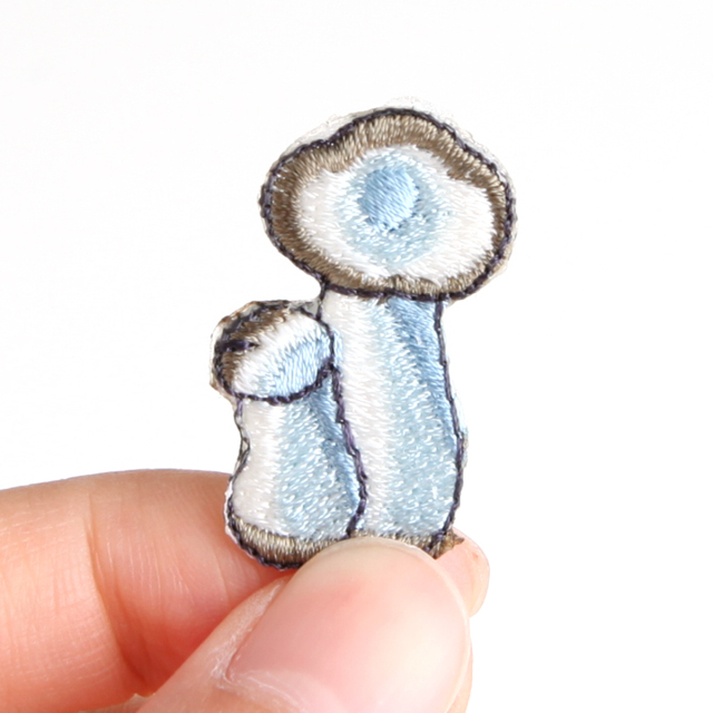 アイロンで付けられるワッペンです。白い石づきの部分にUV糸を使っています。綿やポリエステルの素材に使用いただけますが、圧着する素材自体が熱に弱い場合はご注意ください。