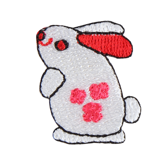KYWS-1073/2023年の干支、兎をワッペンにしました。兎は、その穏やかな様子から家内安全、跳躍力から飛躍・向上の意味合いがあり縁起物とされます。立ち上がり兎と、見返り兎、兎餅のセットです。