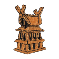 KYWS-1147/高槻市今城塚古墳出土。136体以上出土した祭祀用の形象埴輪の中でも、家形埴輪は幅110cm、高さ170cmと国内最大級の大きさを誇る。5世紀前半頃作られた。