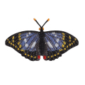 KYWS-988/大紫。チョウ目タテハチョウ科。日本の国蝶とされる50–55mmの大型の蝶。オスの翅は光沢のある青紫色で美しい。日本全国の手入れされた雑木林に生息する。クヌギ、コナラ、ニレの樹液や、クリやクサギの花の蜜を吸う。他の昆虫をけちらして樹液を吸う姿も。飛翔能力が高く、近くにいれば羽音が聞こえるくらい力強く羽ばたく。