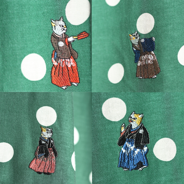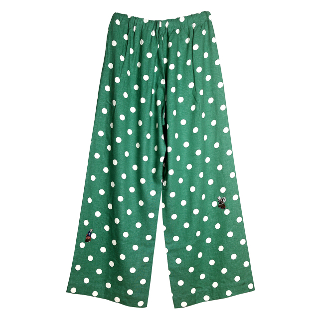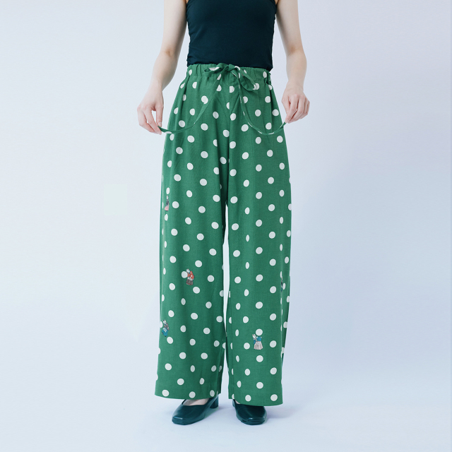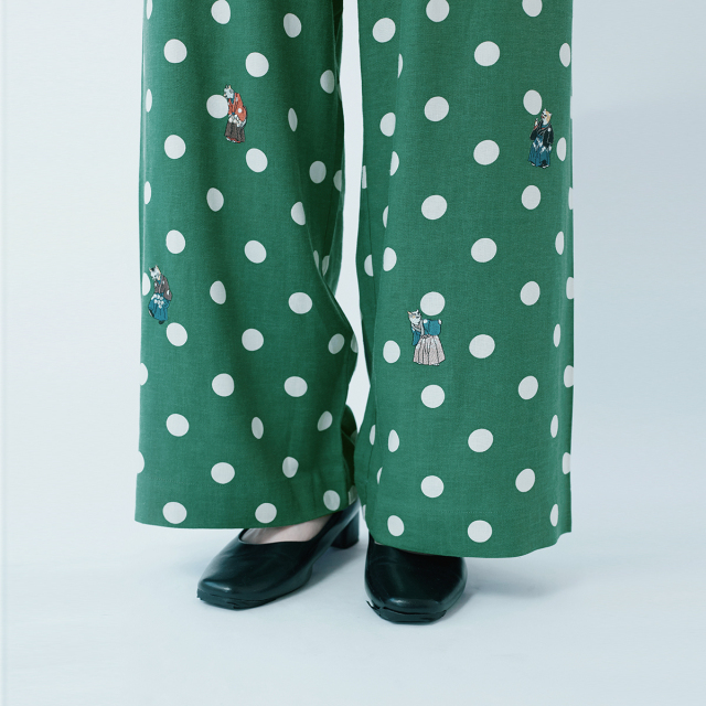 KY63-1115G/ゆったりパンツ/流行猫の曲手まり(緑)