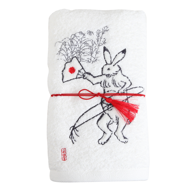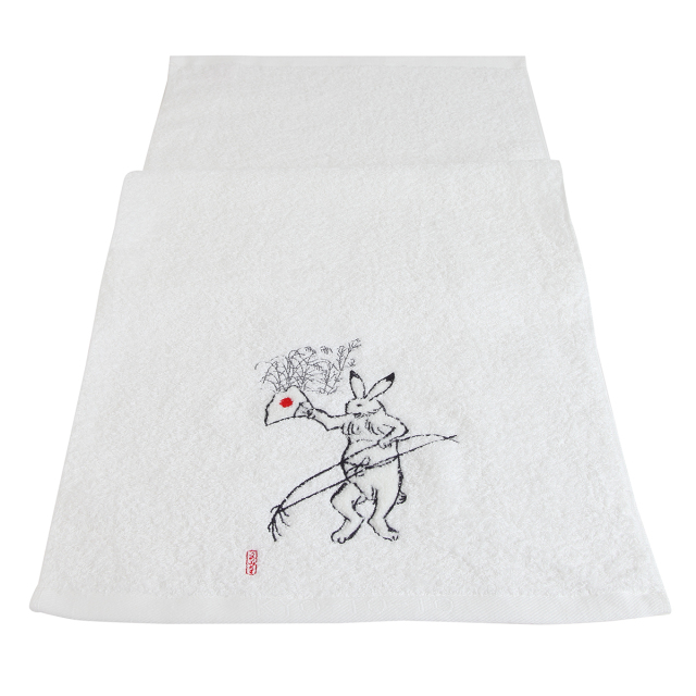 KY72-627/フェイスタオル/鳥獣戯画兎(白)